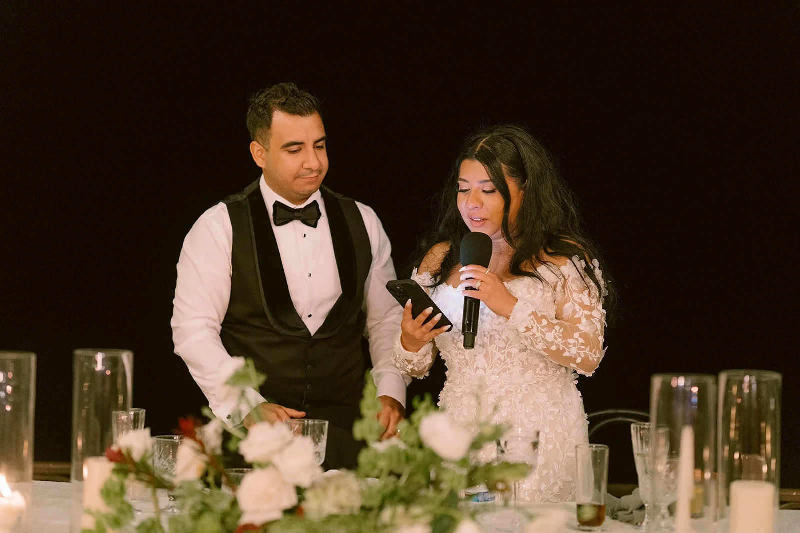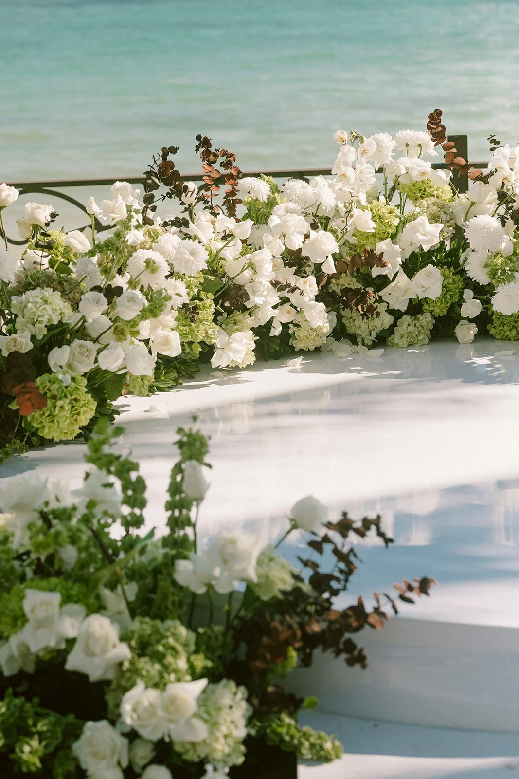 The head table, framed by florals with the ocean just beyond, became a natural focal point as guests settled in for the evening.