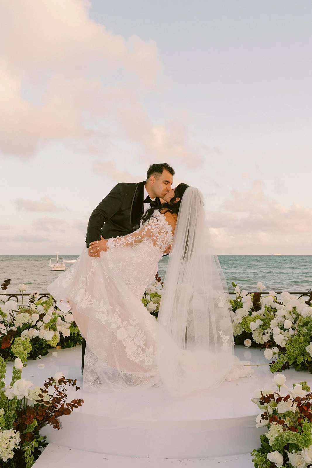 Their day moved from a ceremony on the villa’s grand entrance stairs to an oceanfront reception by the pool, finishing with a full night of celebration under the lights. One location, ocean views, and a wedding that flows naturally from one moment to the next, without stress, without rushing, and without overcomplicating the experience.