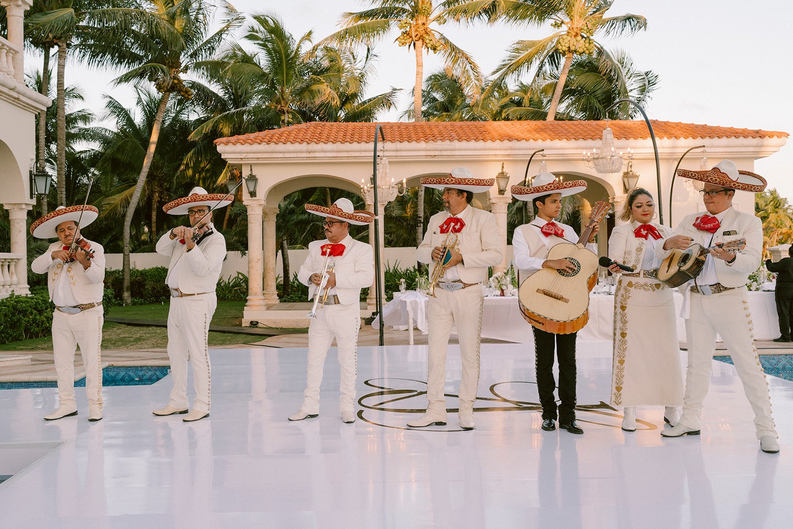 Venue: Villa La Joya | Planning: Villa Planners Nancy | Photography: Paola Marquez | Content Creator: Chic Click by Ale | Hair and Makeup: Prep Tulum | Dress: Justin Alexander Signature | Florals & Decor: Mandarinna | Furniture: EW Cancun | Catering: Icaza Creativos | Churro Cart: Los Pockets | DJ: UNO Audiovisual