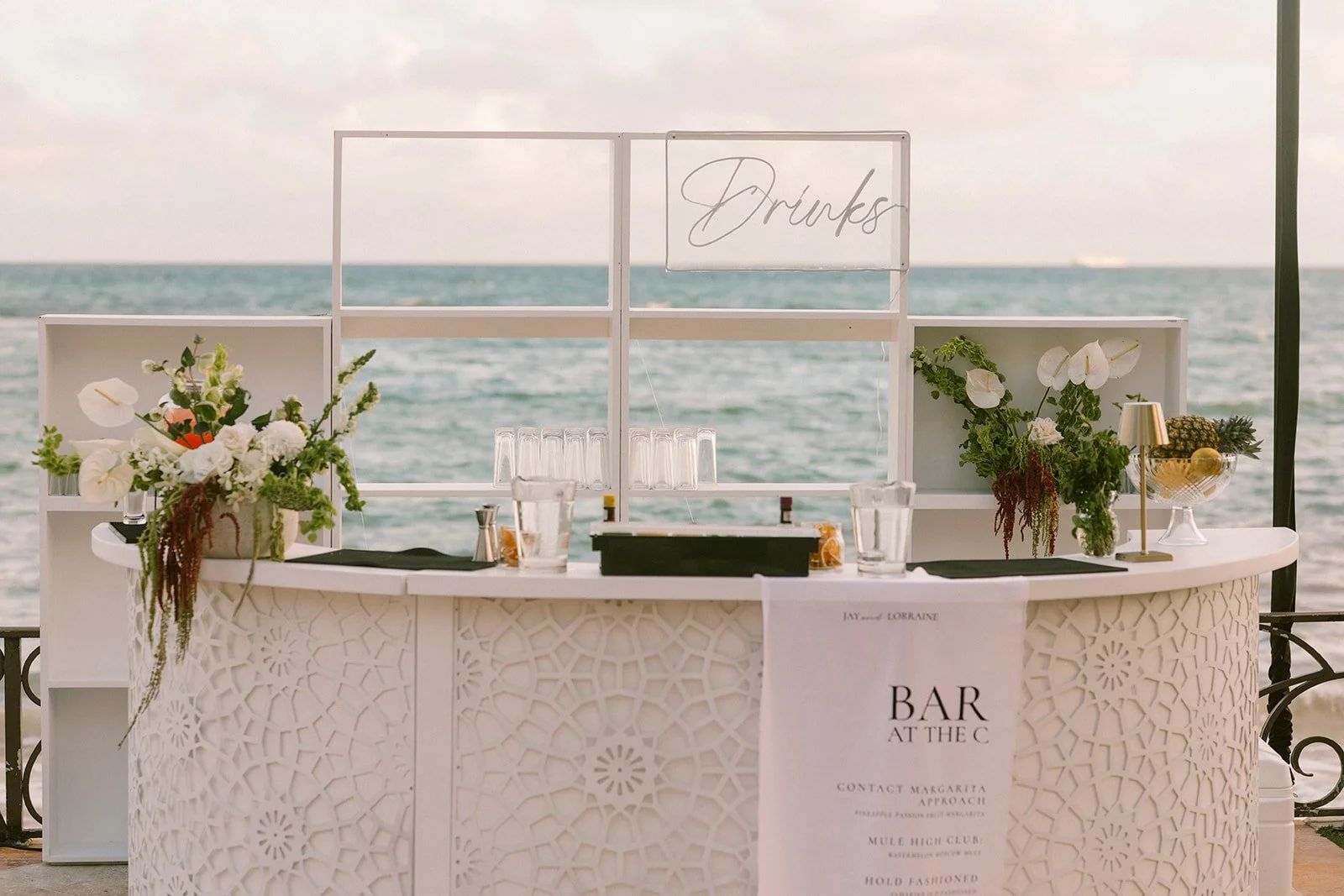 Guests gathered with drinks in hand as the sky softened over the Caribbean. The transition from dinner into celebration happened naturally, with conversation, movement, and music building throughout the space.