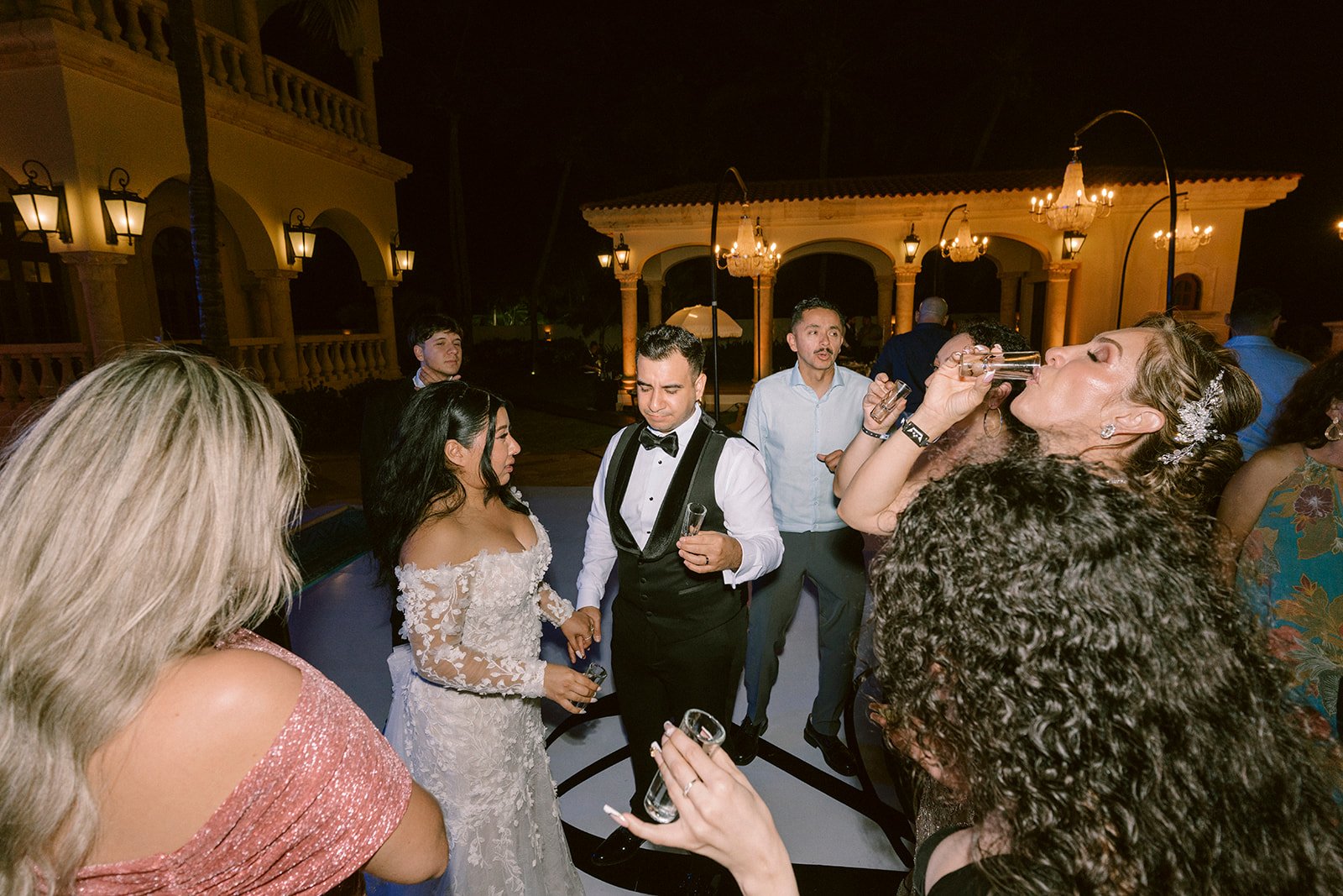 From above, the scene felt complete. Guests gathered together, the ocean stretching into the dark, and the villa glowing under the Riviera Maya sky.