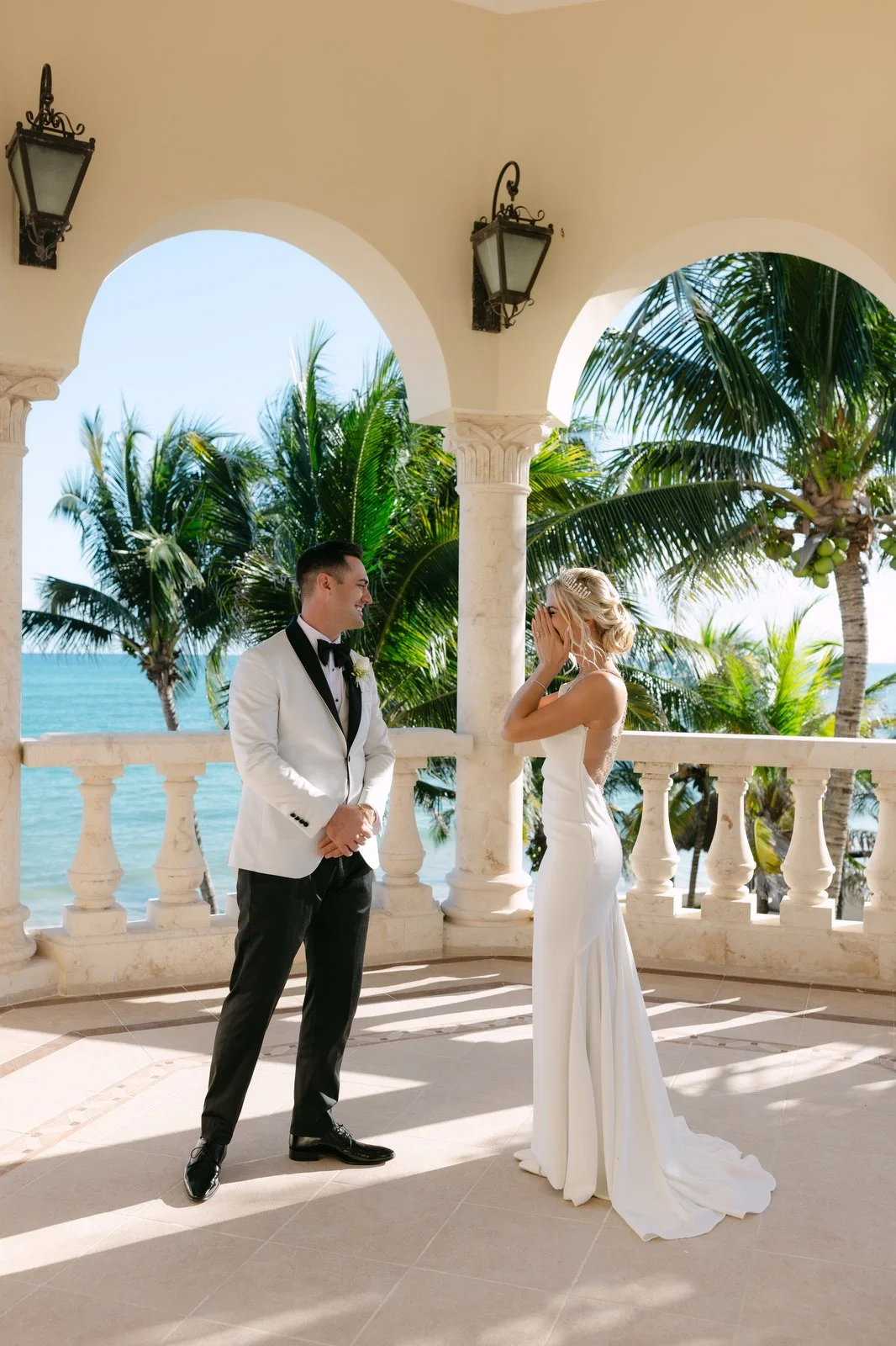Their wedding at Villa la Joya reflected that same clarity and intention — modern, refined, and deeply personal, set against the Caribbean Sea in Riviera Maya, Mexico.